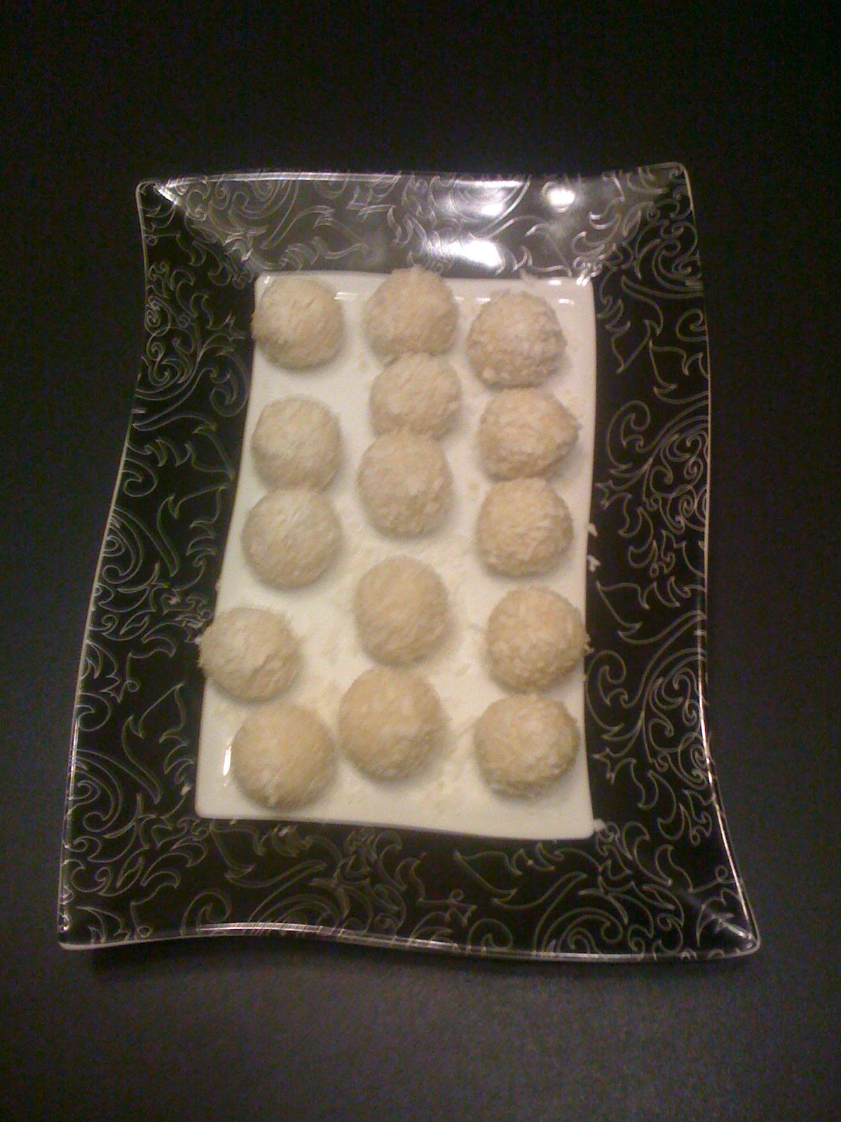 Nu m-am dat în vânt niciodată nuj cât după cocos, însă în ultima vreme am degustat tot mai multe bunătăţi cu cocos şi o să încep cu minunatele “bombe” de cocos ale lui Kzarinne. Şi-a terminat pe mine uleiul ei de cocos preţios, care arată ca un unt, tare şi e de-a dreptul greţos dacă încerci să îl papi gol, dar miroase divin şi e foarte sănătos. Dar cum Kzarinne (apropo, cred că acum se recuperează după premiera la Târgul Verde, arăta foarte bine acolo, drăguţa ca întotdeauna şi ea şi Tea) e o maestră a bucătăriei naturale, a găsit o formă care să te facă să salivezi şi la simpla privire. Bombele, cum le zic eu, sunt un fel de Raffaelo, dar muuuuuuuuuuuuult mai bune. Fără alună. Demenţiale. Le vedeţi în poză, doar :D. Sunt divine, o săptămână am visat la ele după ce am păpat prima dată.