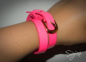 De când mă știu mi-a plăcut încălțămintea cu toc. Când eram micuță puneam stăpânire pe papucii mamei de câte ori avem ocazia. Când eram răcită, eram scutită de grădi, dar ai mei nu erau scutiți de muncă/școală, așa că rămâneam pentru puțin timp singură, cu Radio România dat tare și cu toți papucii cu toc, pe care îi trăgeam în mijlocul holului prea strâmt, de bloc. Îmi plăceau mai ales tocurile care sunau. Cu cât sunau mai ”frumos”, cu atât mai bine. Îi încălțam și visam la momentul când ”voi fi mare”, să pot să port și eu pe stradă tocuri care sună frumos. Doar că multă vreme sandalele și papucii mei n-au văzut toc. Pe vremea aceea erau la modă niște săndăluțe unisex de cauciuc (trăiască anii 80). Zic unisex, că le văzusem și în picioarele băiețeilor de la grădi (cu șosețele albe). Îmi doream și eu tare mult o pereche, dar mama îmi explica mereu că nu sunt sănătoase, că nu respiră pielea în ele – ce pricepeam eu (aveam vreo 4-5 ani)?? Și mereu îmi lua săndăluțe de piele. Dar, nu știu cum se face că, într-o vacanță de vară, am convins-o să îmi ia și mie niște gume de sandale din acelea. Acum îmi explic raționamentul: plecam în Făgărași, cu familia, în excursie și erau numai bune pentru asta, dat fiind faptul că eu mă băgam mereu cu picioarele prin bălți. Ce mândră eram de ele, eram și eu în trend! ;)) Totuși, bucuria mi-a fost de scurtă durată deoarece într-o dimineață m-am trezit cu o singură sanda lângă cortul în care dormeam. Mai târziu, cealaltă mi-a fost găsită în vale, cu baretuțele roase, imposibil de purtat! Pe acolo mișunau vulpi, care dădeau târcoale excursioniștilor, în căutare de mâncare ”nemuncită”. Ai mei mi-au plasat explicația că mi-a fost roasă sandaua de către vulpe. Ce necăjită am fost o vreme! Aproximativ 23 de ani mai târziu, azi :)), am trecut pe la Motan, locul meu preferat de papuci ieftini și super mișto și am văzut o pereche de sandale de plastic roz neon ce mi-au amintit de copilărie. Culorile turbo, fluorescente sunt foarte în trend acum (probabil la noi se vor purta abia vara viitoare mai vârtos) și pe o sanda de cauciuc, rozul turbat arată ca la el acasă. Era singura pereche, fix mărimea mea, așa că le-am luat pe sus și le-am adus acasă – abia aștept să le inaugurez. Și, hey, acum am motiv serios să-mi iau un sejur în Grecia! Doar sunt perfecte pentru marea aceea turcoise! 😀 Împreună cu ele am adus și o bucățică de curea, tot ruz turbo, pe care am tăiat-o (era oricum tăiată) mai scurt și am făcut-o zgărdiță/brățară. Adevărul e că arată mai bine ca brățară dublă, zgărdițele nu sunt tocmai stilul meu. Cred că sunt primele articole fluorescente din garderobă. Voi v-ați achiziționat articole vestimentare sau de alt fel, neon? Dacă nu găsiți săndăluțele copilăriei, cu siguranță veți găsi fustițe, rochițe, accesorii, pentru o vară turbo!