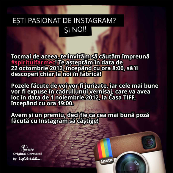 Farmec, brandul nr. 1 de cosmetice din România este primul brand cu capital 100% românesc ce-și deschide porțile către noua isterie ”socială”, Instagram. În data de 22 octombrie 2012, onlinerii clujeni care folosesc aplicatia Instagram pe telefoanele mobile sunt aşteptaţi la Farmec pentru a surprinde “Spiritul Farmec”. Aceştia vor avea parte de un tur special care va include secţia de cosmetice, laboratorul de eficacitate sau laboratorul de cercetare, fiecare urmând să pozeze, folosindu-se de Instagram, ce consideră a fi spiritul Farmec. Fotografiile realizate prin Instagram vor fi uploadate pe conturile de social media ale participanților, prin intermediul hashtagului #spiritulfarmec.