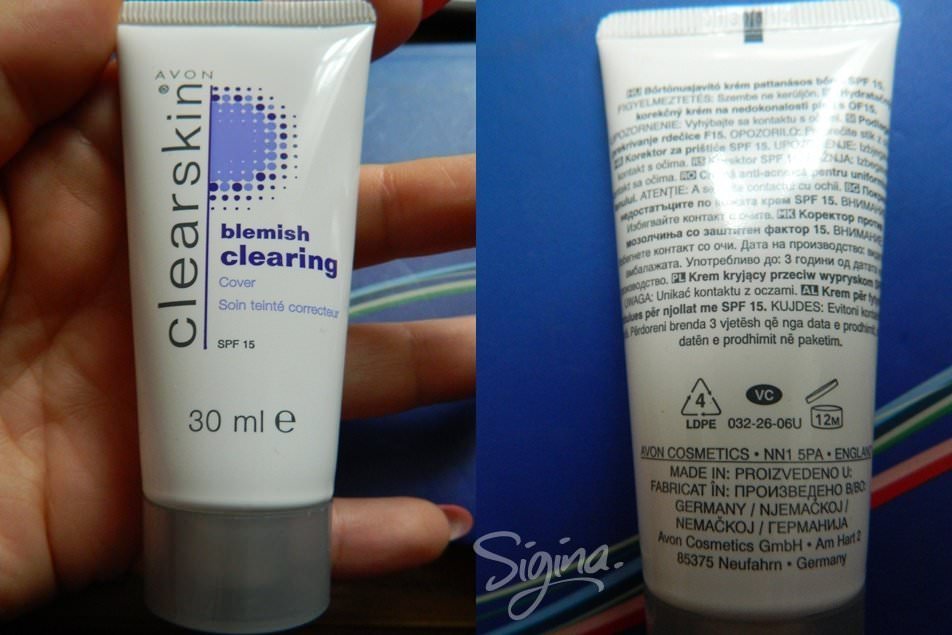 Blemish Clearing Cover, de la Avon, e, după cum vă dați seama, din gama Clearskin pentru adolescenți. Are SPF 15, e o cremă corectoare lejeră care spune cam așa: Cremă antiacneică pentru uniformizarea tenului. Concepută cu tehnologia Blemish Busting, uniformizează tenul și reduce apariția roșeții. Se aplică dimineața, se evită zona ochilor. Conține oxibenzonă.