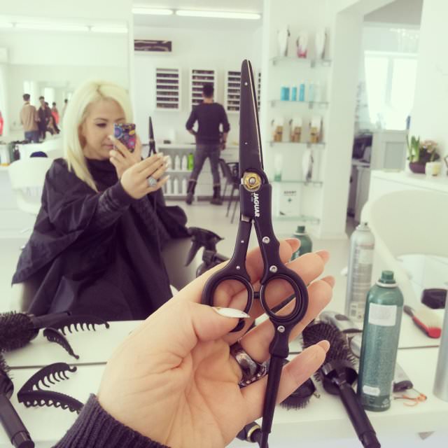 Azi am fost la tuns vârfuri și așteptam cu mare nerăbdare să-mi prezinte noua ”bestie” din arsenal (later edit: noua de cand nu m-am tuns eu): Jaguar Thermocut, foarfeca termică ce sigilează vârfurile părului, împiedicând astfel deshidratarea și pierderea substanțelor care mențin firul de păr plin de vitalitate. ”Foarfecile normale, chiar și cele bune, de câteva mii de euro, oferă o tăiere perfectă a vârfurilor, ceea ce le împiedică să se despice atât de ușor. Totuși, nu închid sau nu închid de tot vârful firului de păr. Însă Jaguar, prin efectul termic, le și închide, astfel că nu se mai deshidratează așa ușor”, îmi povestește Raul Tișa. Rezultatul: un păr mai voluminos, cu mai multă strălucire și mai elastic, prin stimularea autoregenerării.