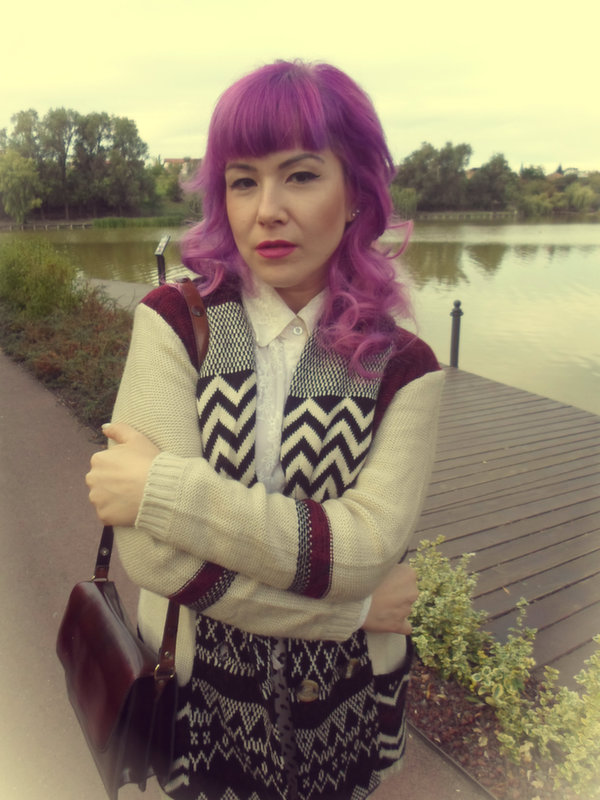 Joi m-am îndreptat spre Vestige, la tuns, decisă, ca niciodată, că schimb ceva la freza mea. În afară de culoare, desigur. Deși sunt o fire care oscilează mult, pentru a face alegerea perfectă, de data asta hotărârea s-a concretizat haios: ”Fă-mi ceva, altceva. Tunde-mi breton. Fă ce știi tu că-i fain.” Ați înțeles, nu? E un soi de ”nu sunt hotărâtă, sunt doar hotărâtă să schimbi tu ceva”. Eu zic că-i progres. Și mi-a tăiat Raul breton drept (mă rog, asimetric), pe motivul că acum sunt mai ”ascuțită” la față și bretonul drept rotunjește (deci nu era bun, înainte). + un bonus interesant în spate, știți voi, Raul style.